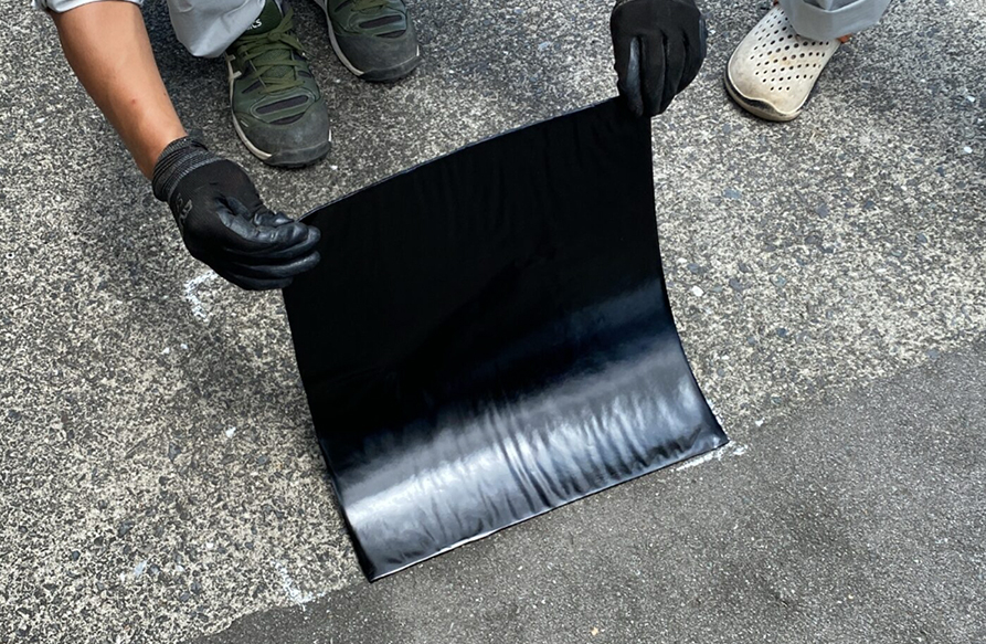 シート形状で補修箇所において加熱するだけ。特殊な技術が不要です。