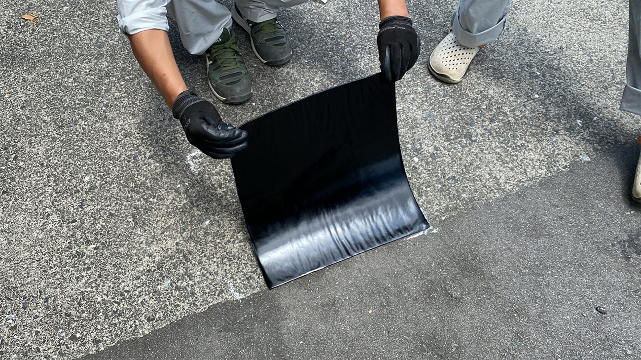 シート形状で補修箇所において加熱するだけ。特殊な技術が不要です。